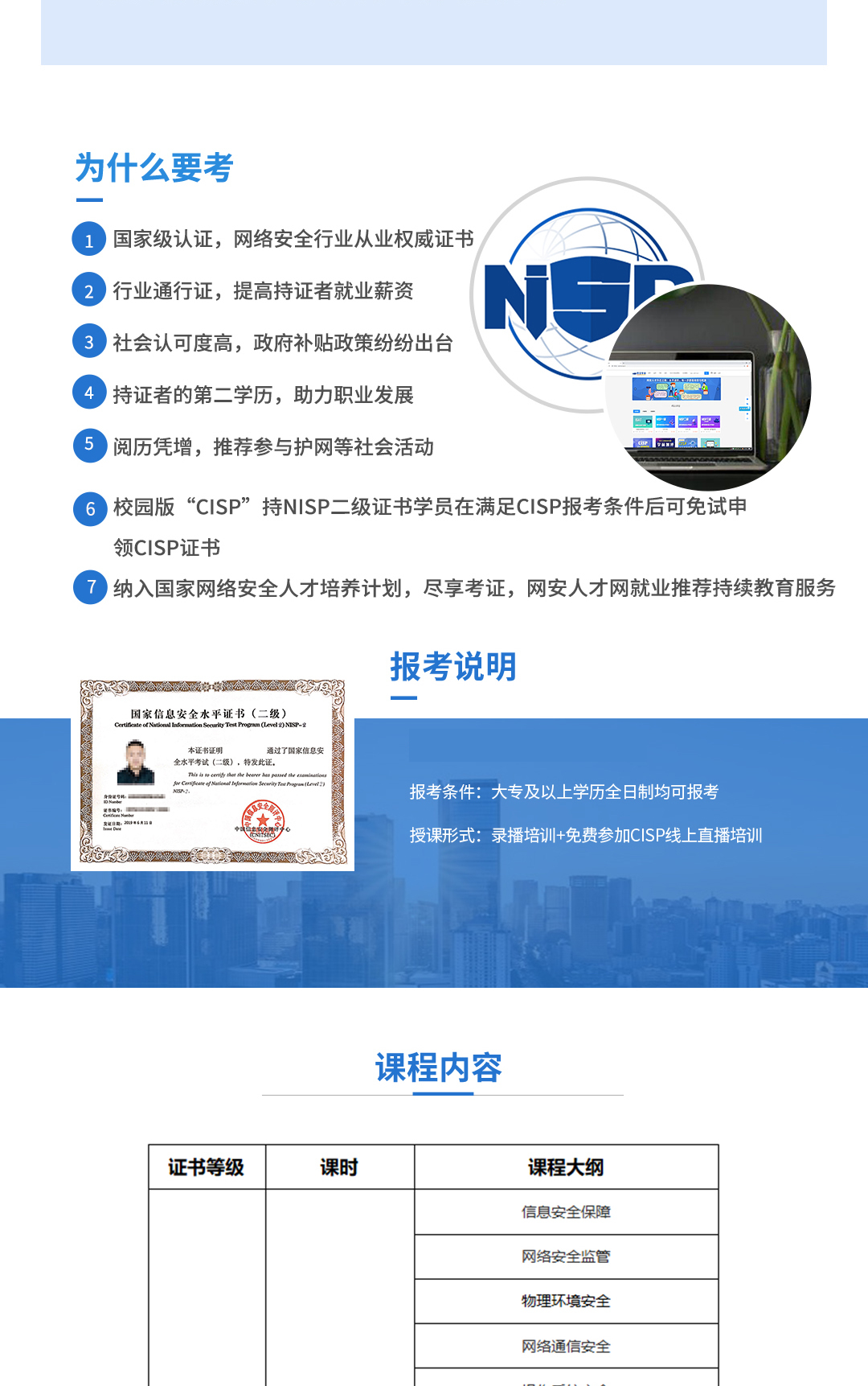 国家信息安全水平考试 NISP一级 NISP二级 各大中专,本科院校在校生报名通道开放中...