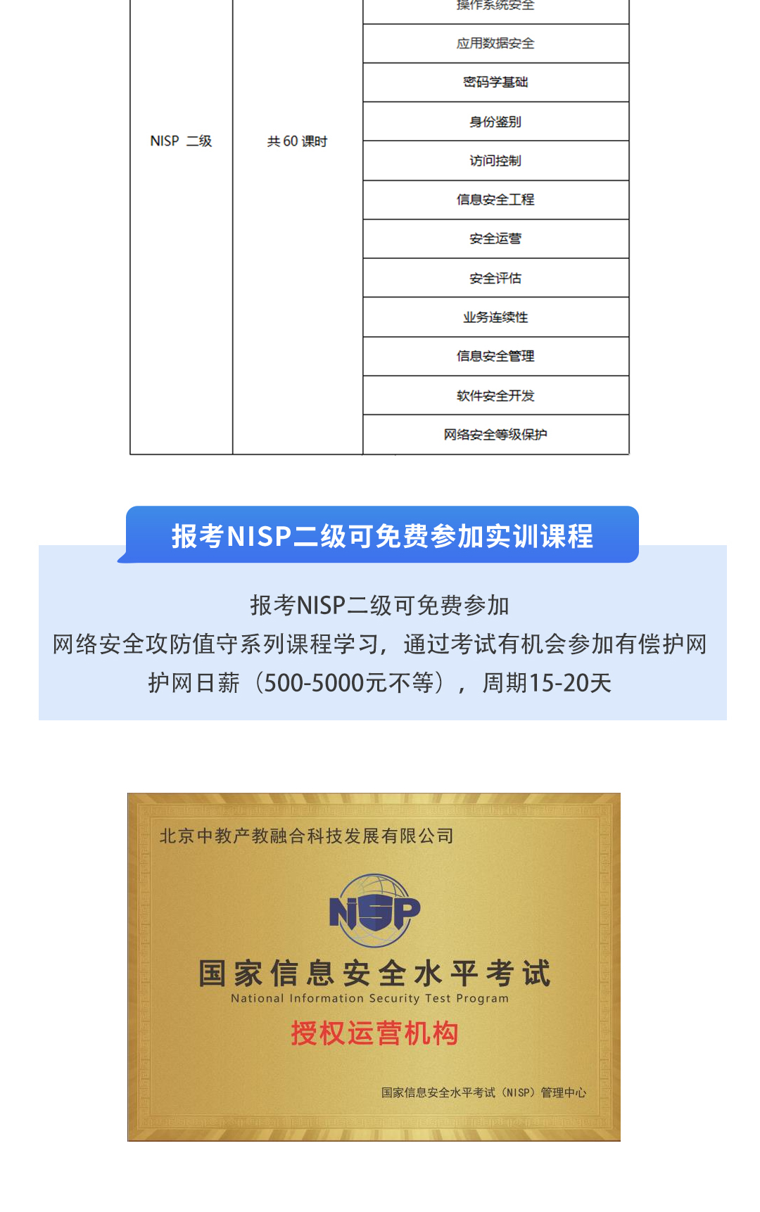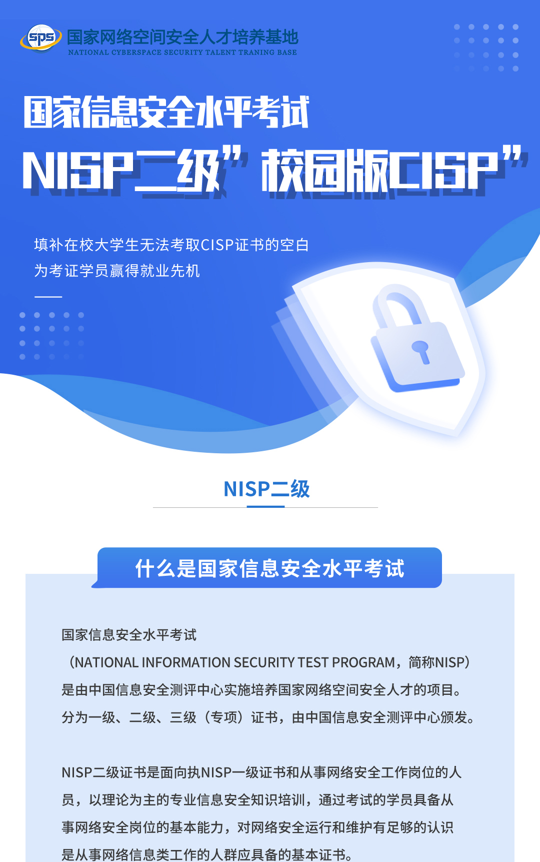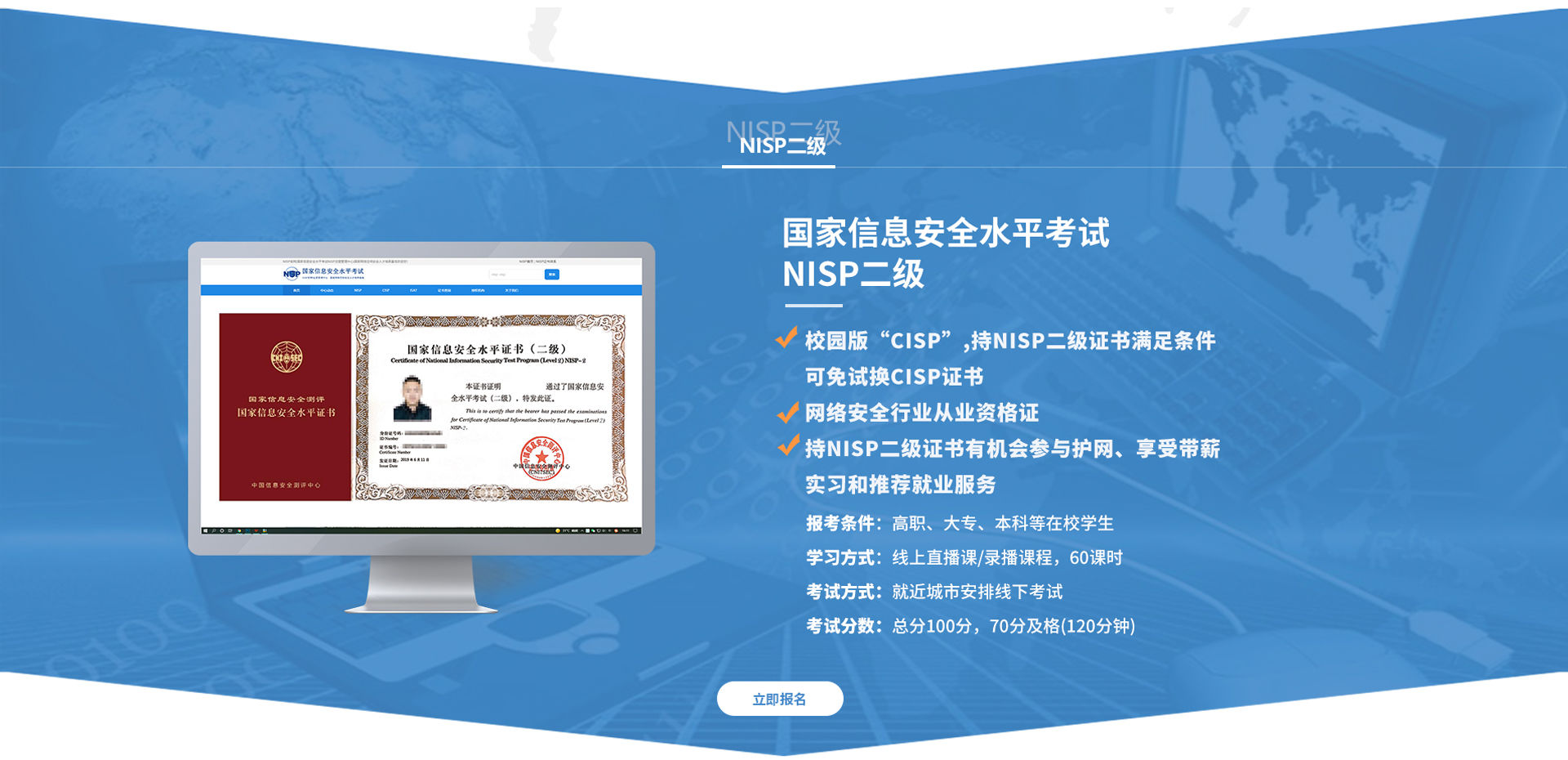 国家信息安全水平考试 NISP一级 NISP二级 各大中专,本科院校在校生报名通道开放中...